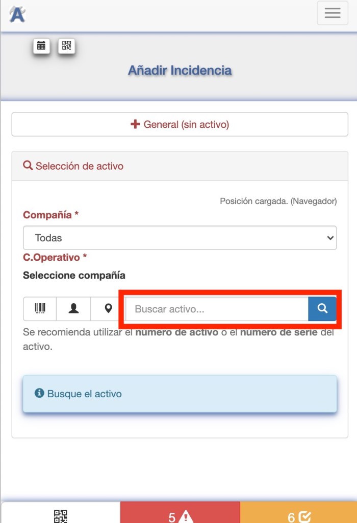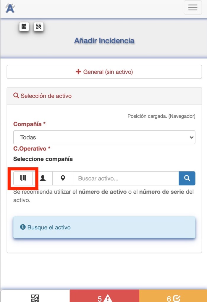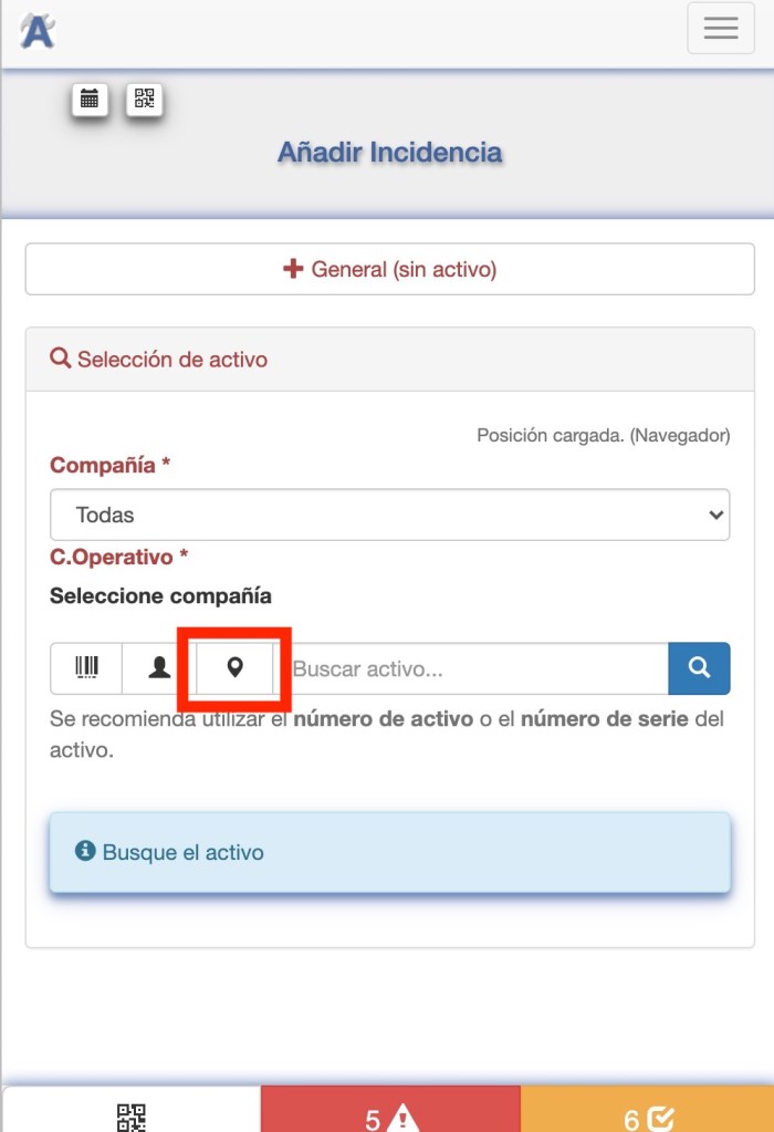 Para facilitar localizar el activo para reportar incidencias en ADMIN tenemos varias opciones. Algunas de estas opciones están especialmente pensadas para ser utilizadas desde un dispositivo móvil.